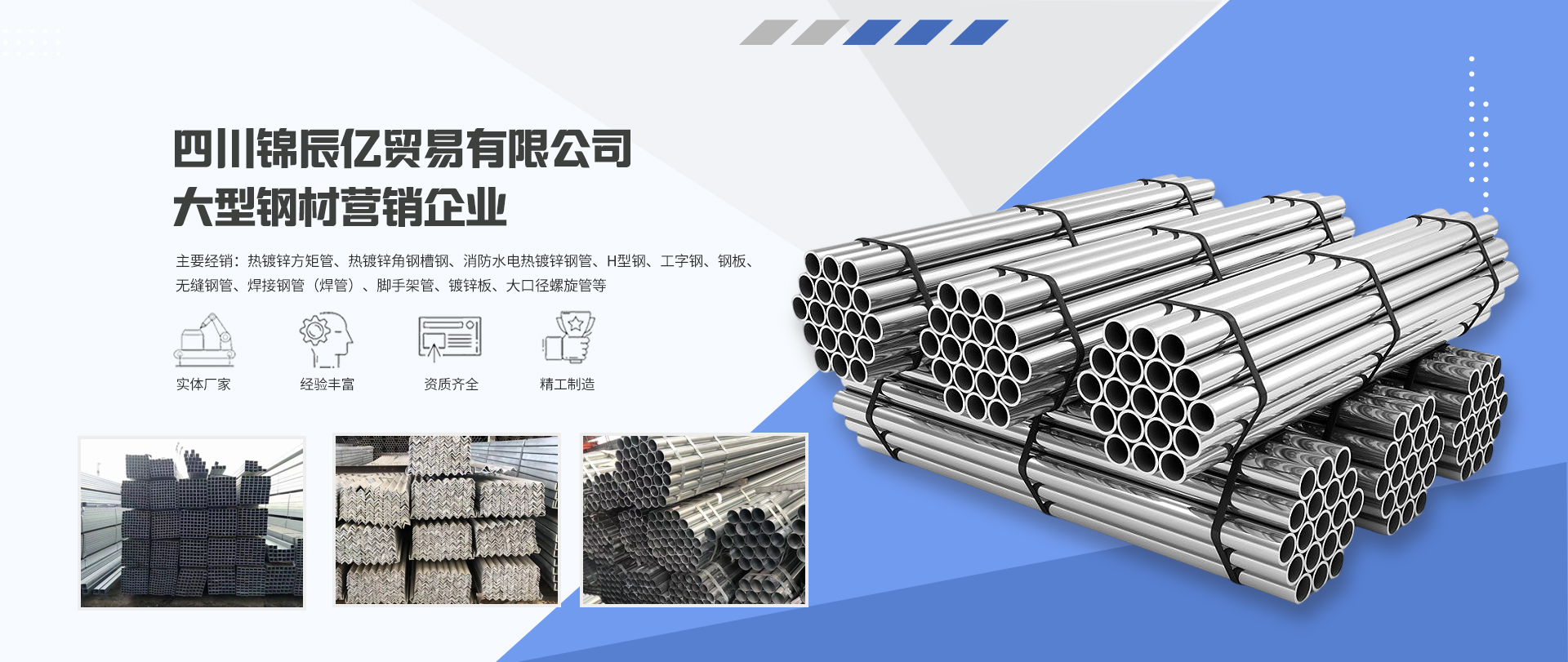 四川錦辰億貿易有限公司(24小時服務熱線:18884743277 )是一家集貿易、加工、配送、服務為一體的大型鋼材營銷企業,主要經銷:熱鍍鋅方矩管、熱鍍鋅角鋼槽鋼、消防水電熱鍍鋅鋼管、H型鋼、工字鋼、鋼板...